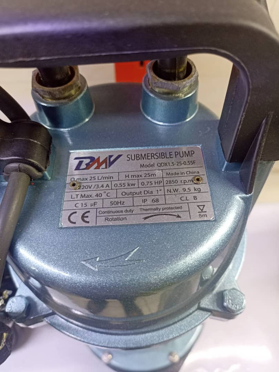 پمپ کفکش 1 اینچ 25متری فلوتردار (محافظت در مواقع بیآبی) برند BMV مدل QDX1/5-25- 0/55