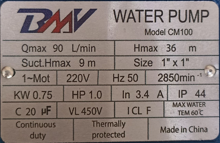 پمپ آب ساختمان یک اسب بشقابی بی ام وی مدل CM100 با 12 ماه گارانتی